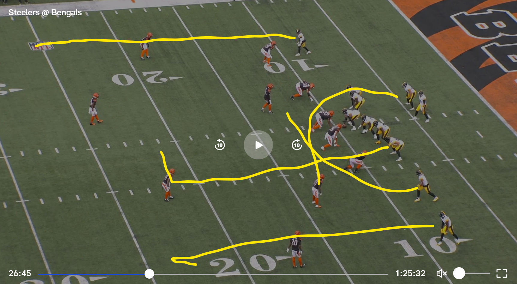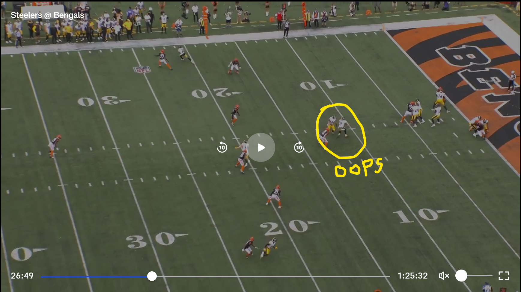 As you know, the Pittsburgh Steelers were pretty damn close to losing Sunday despite a plus-five turnover margin. There are several things you can point to as to why the game was as close as it ultimately was. The inability to run the ball was chief among them. When analyzing quarterback Mitchell Trubisky, it’s a mixed bag. On the positive side, he didn’t turn the ball over and he made some key plays with his feet and arm especially late in the game. On the negative side, he missed some throws that could have resulted in big plays. Chief among them (I’ve used this phrase twice now) was a deep shot to George Pickens down the right sideline. Had it been more accurate it could have gone for six. You aren’t going to hit every throw to be certain but he’s going to be under more and more pressure to take advantage of those opportunities when he gets them. With every week that goes by without a running game, things will only get more difficult. One thing the fan base needs to do is stop pining for Kenny Pickett every time a pass isn’t completed. It is never that simple and believe me, his time will come. Trubisky isn’t exactly helped out when guys are running into each other either. See Below