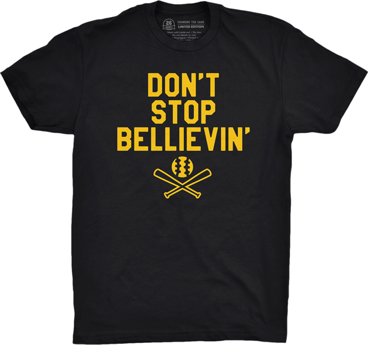 The podcast is presented by 26shirts.com/Pittsburgh where every two weeks a different t-shirt celebrating Pittsburgh Sports comes out. The shirt this time around “Don’t Stop BELLievin” in honor of Pirates’ HR hitter Josh Bell. $8 from each shirt sold benefits Scott Moyer. Get a great shirt and do some good at the same time!