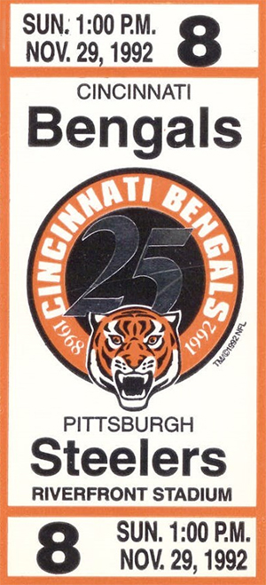 The (8-3) Steelers at the (4-7) Bengals; November 29, 1992