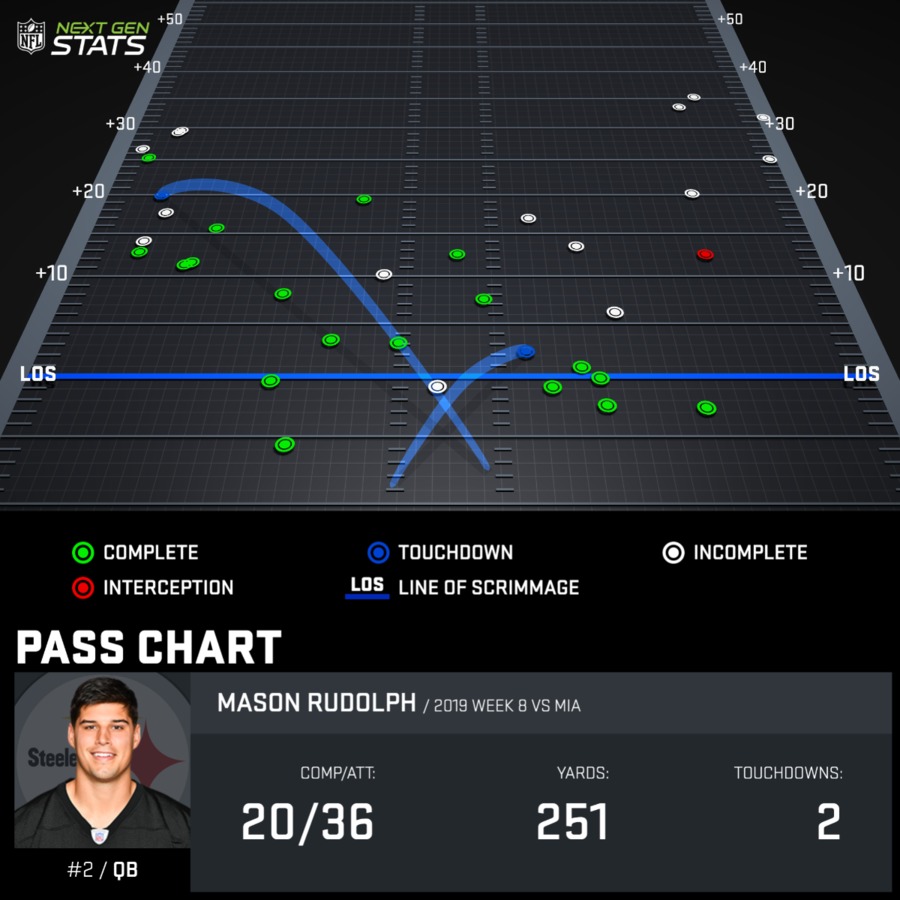 The injuries in the Miami secondary were huge – there’s no denying this – but Rudolph also challenged his receivers to make plays and they responded. While one could argue the Steelers went to the ‘fade well’ too often, there was a reason. They had clear mismatches and as ESPN’s Steve Young said, “most quarterbacks can throw fades all day.” Setting those aside for a second, Rudolph also started to shine on other throws. He was getting the ball out quicker which meant only his receiver had an opportunity to catch the ball. He was getting the ball out in front on crossing routes and he looked overall more comfortable in the pocket.